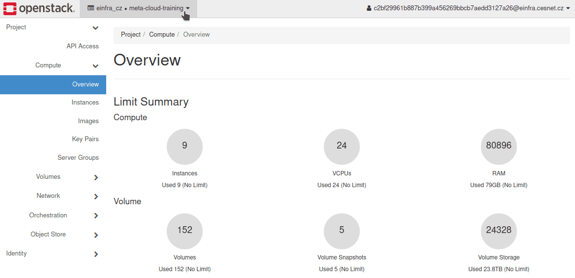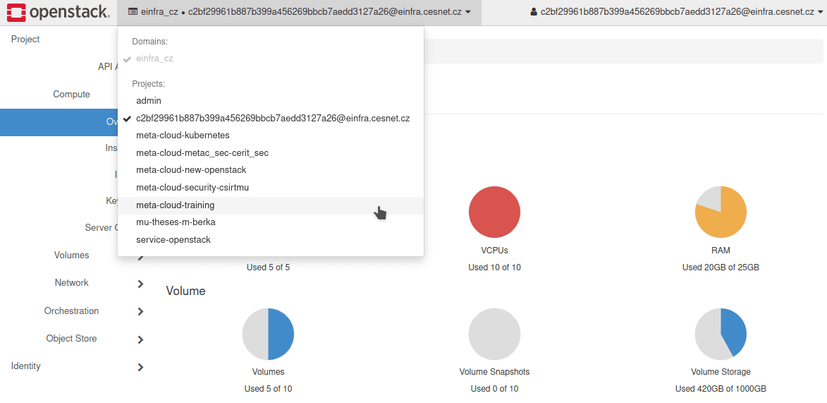 2. Clicking on top left project drop down we can select project (selecting project meta-cloud-training)