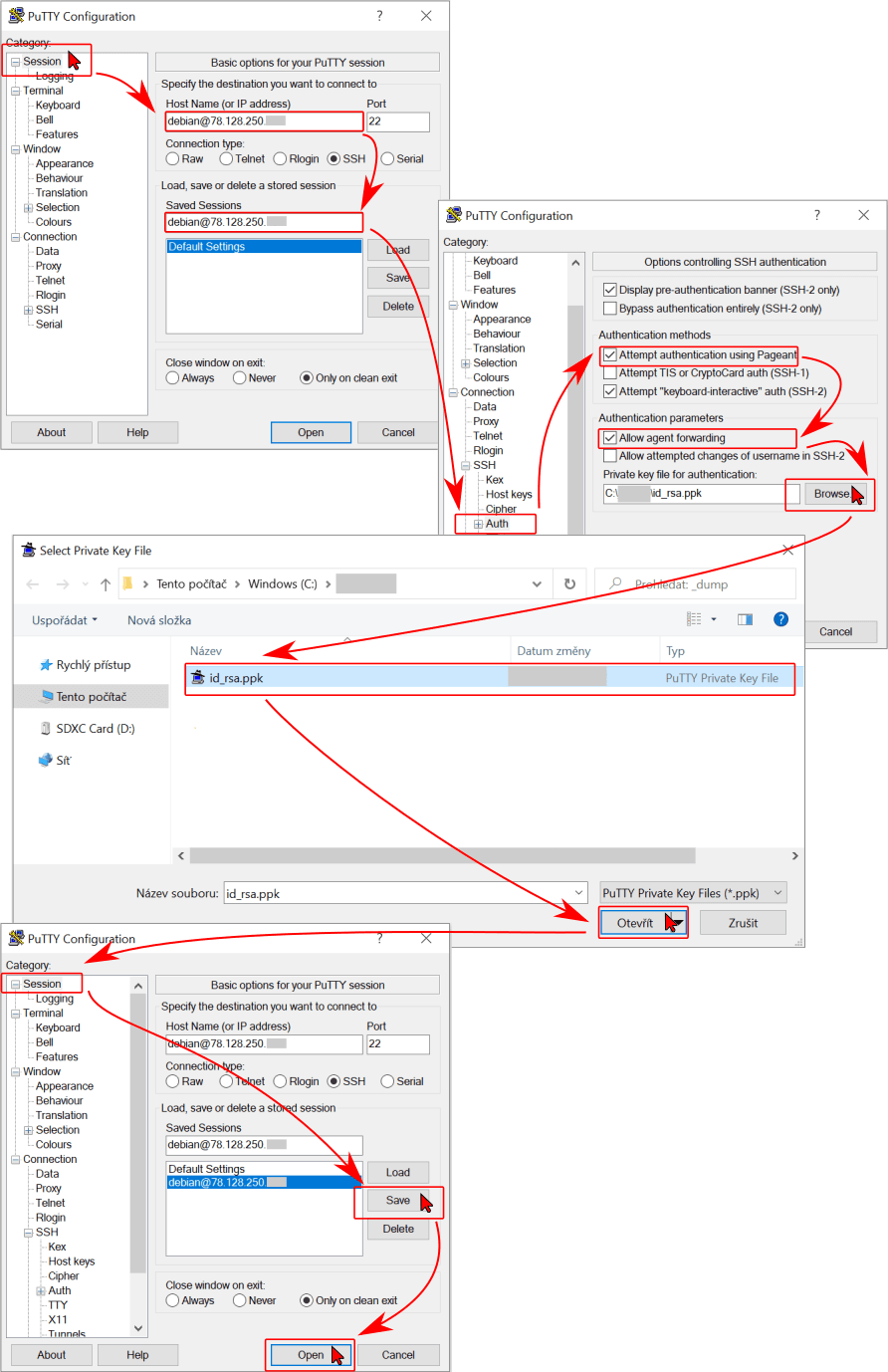 - In Category -> Connection -> SSH -> Auth: