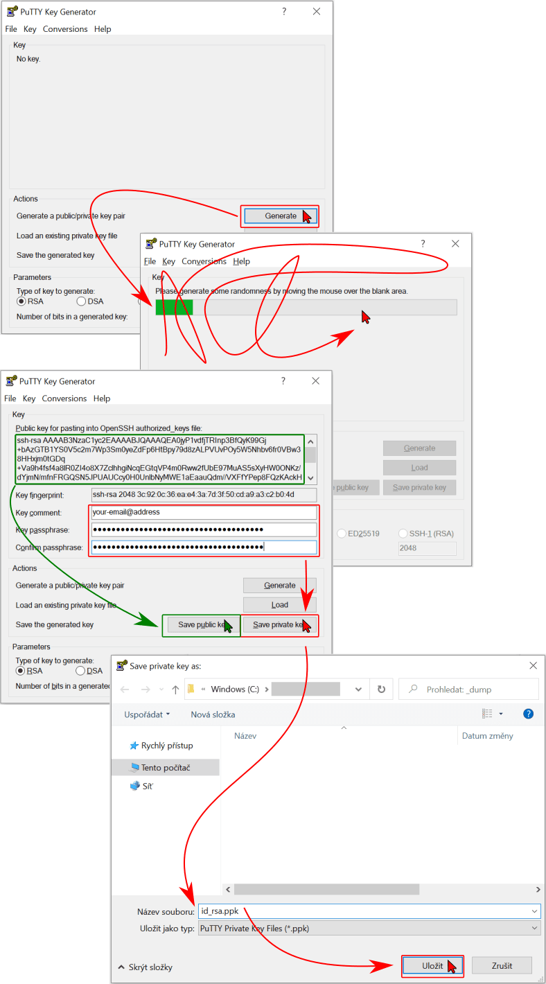 id_rsa.ppkformat using the Save private key button - Save the public key with the Save public key button
